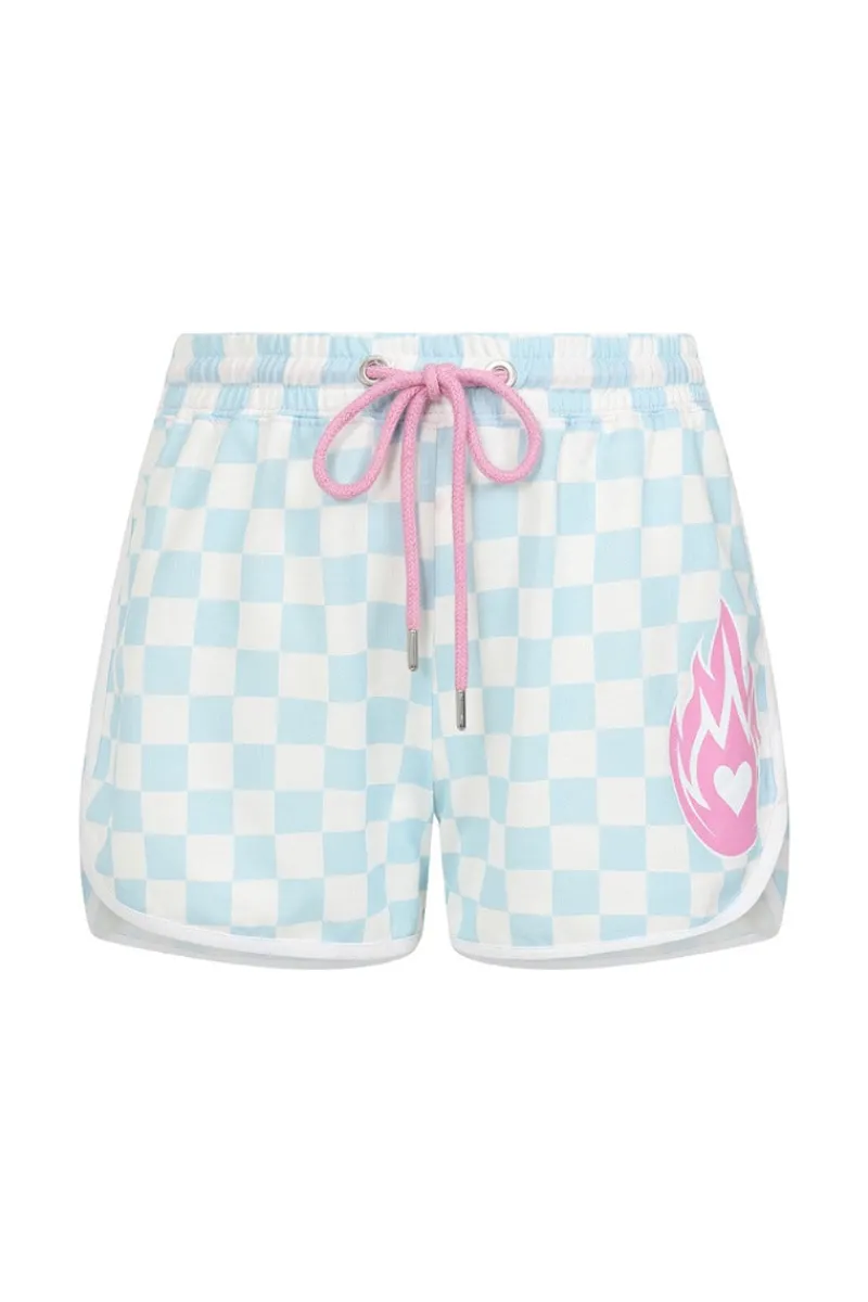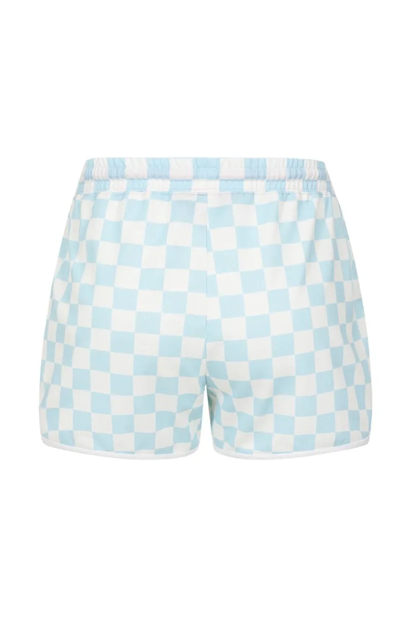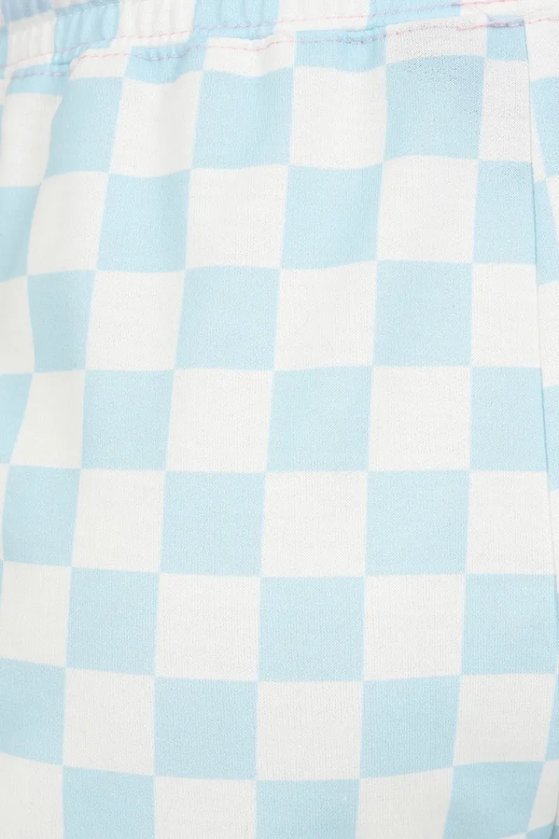 - Blue & white check shorts