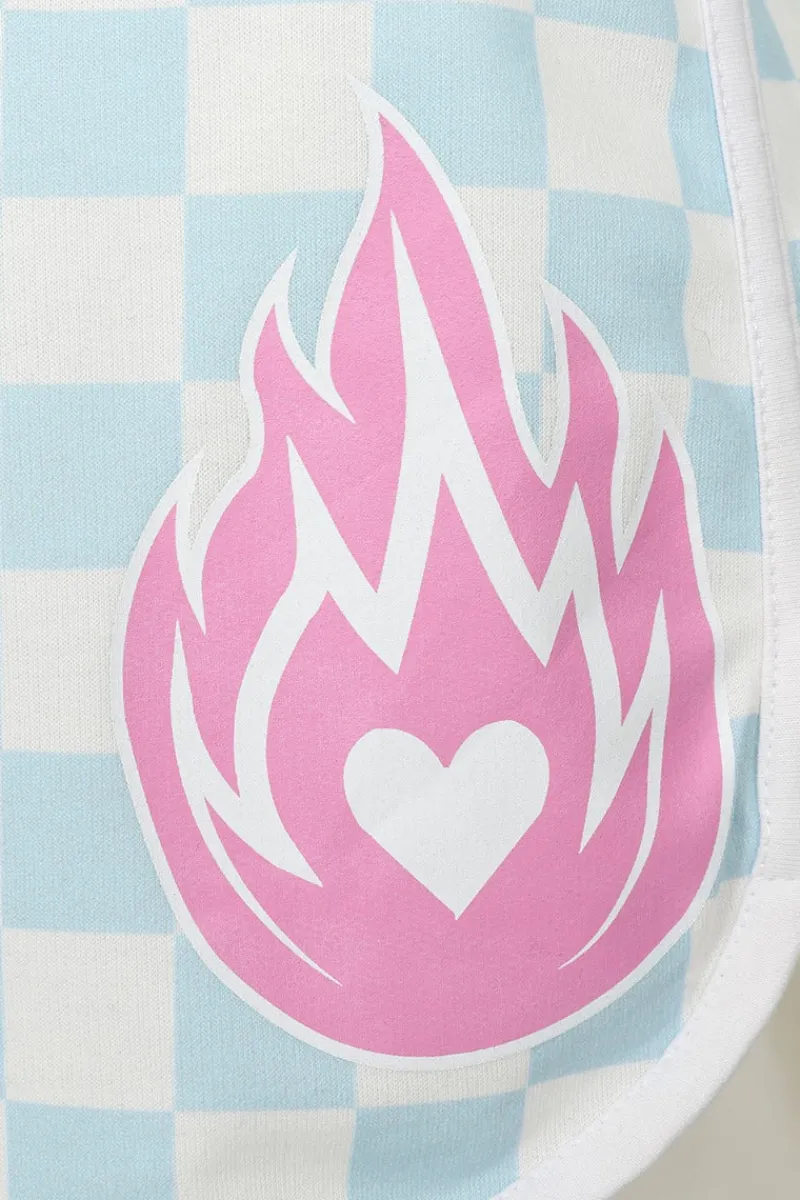 - Printed pink flaming heart motif on front