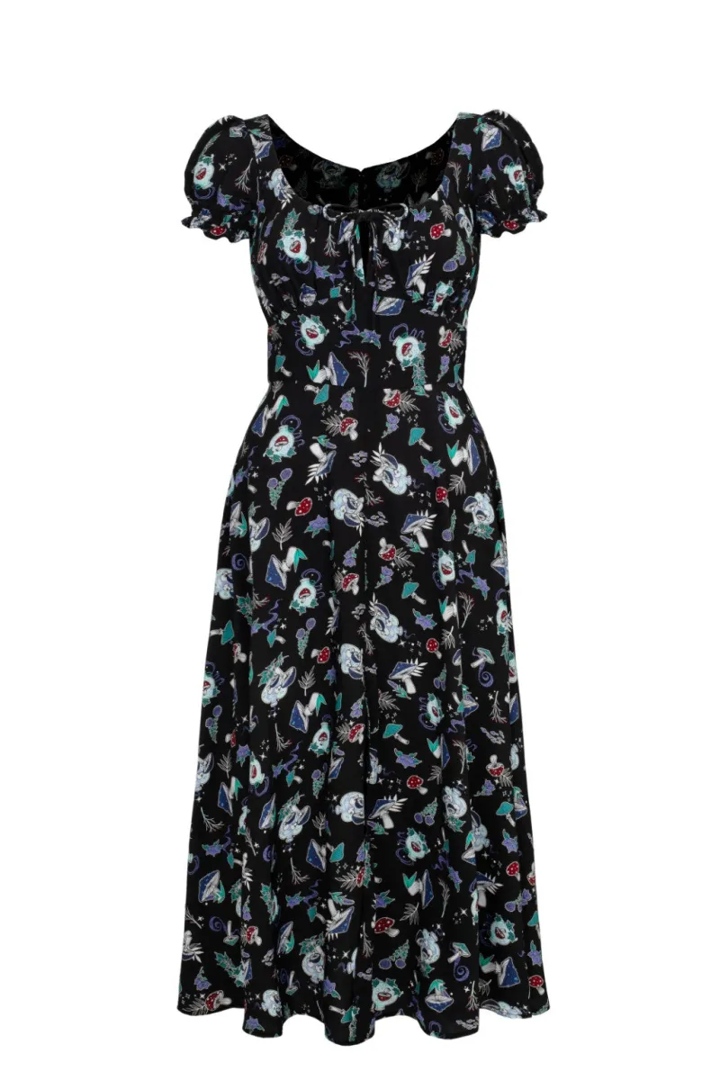 Hell Bunny Amanita Midi Dress Black New