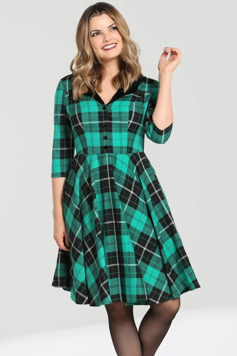 Mid Dress to your tartan collection. - Green and black tartan fit-and-flare mid dress