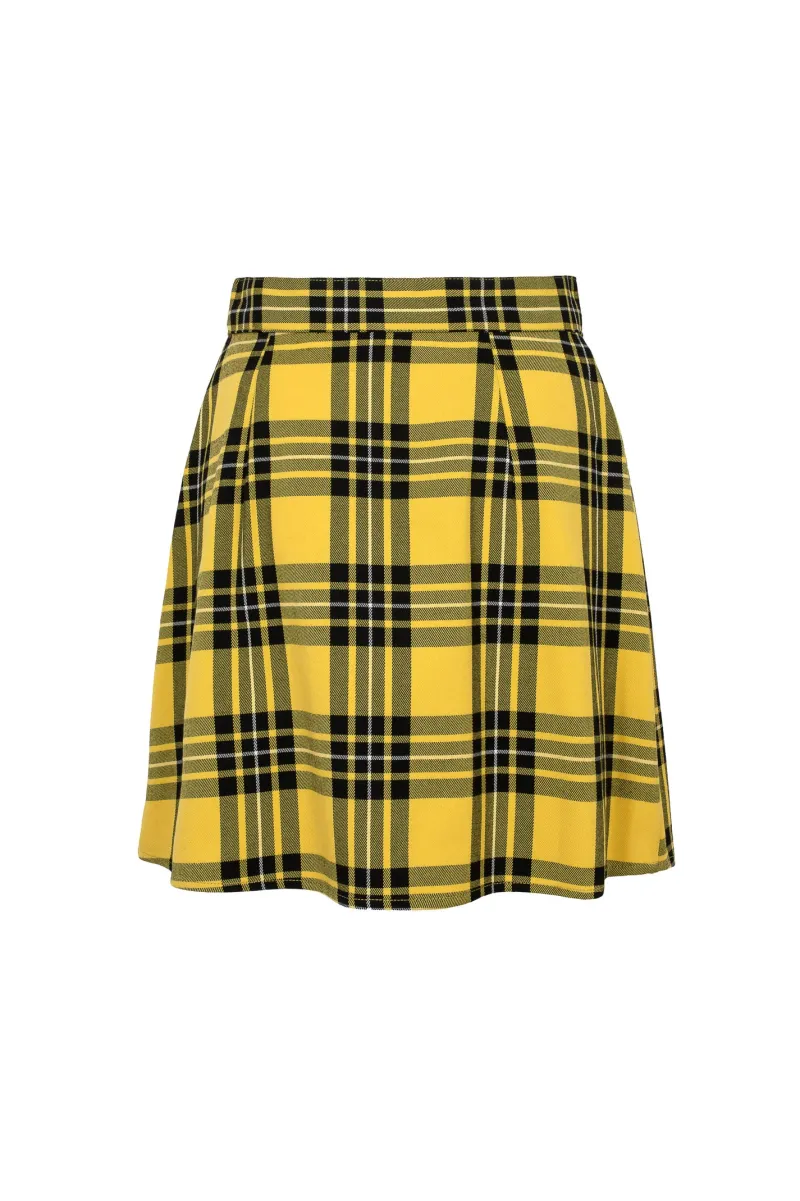 - Yellow & black tartan pleated mini skirt
