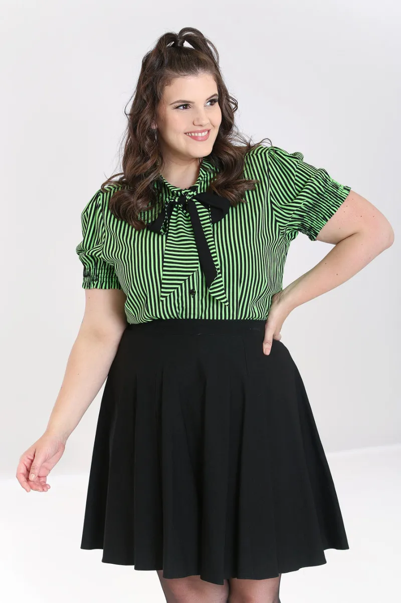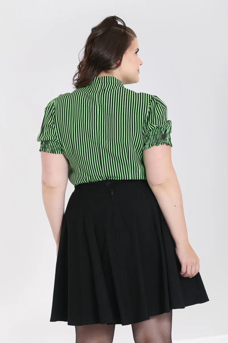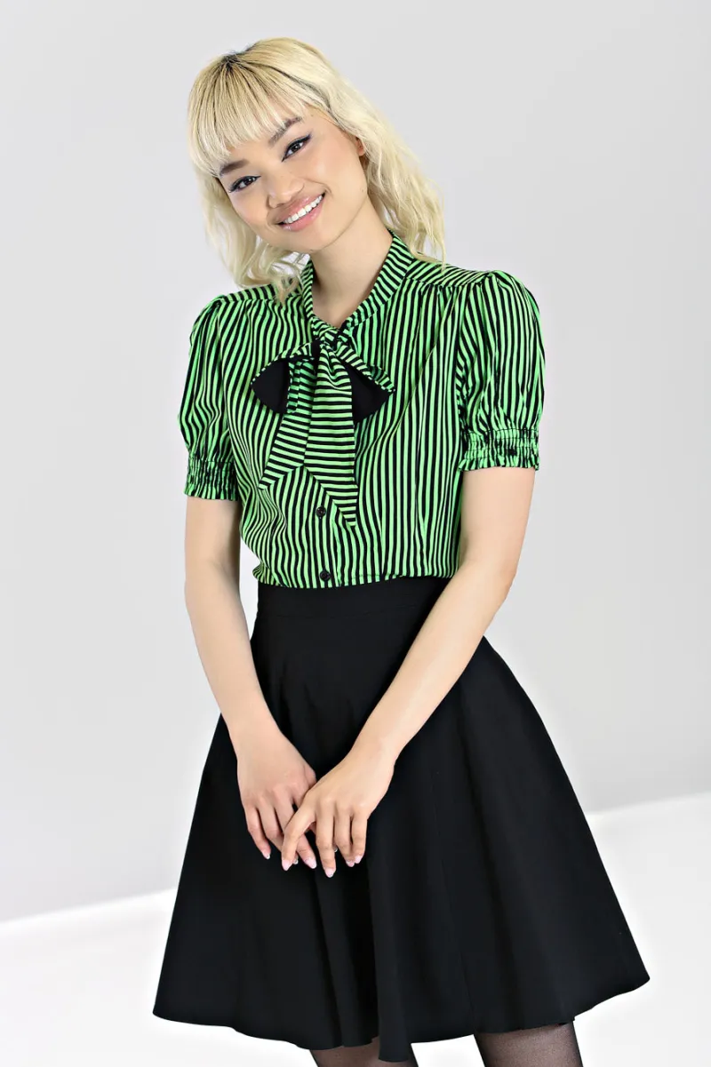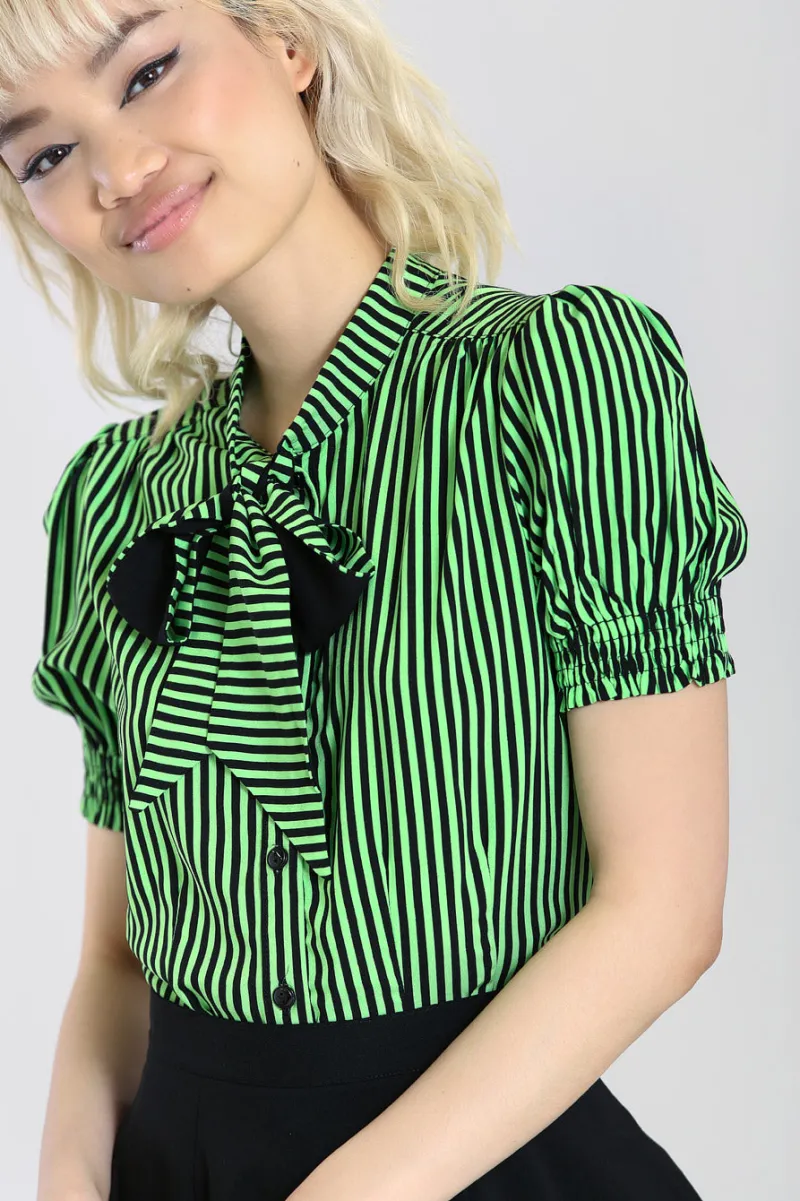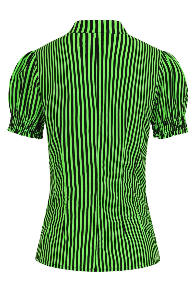 - Striped semi-fitted blouse available in Black & White, Red & Black or Green & Black