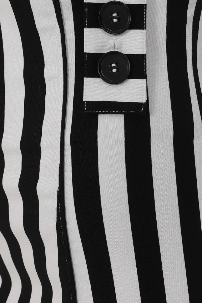 It’s showtime! Make a statement in our Beetlejuice-inspired monochrome stripe Otho Pinafore Skirt.