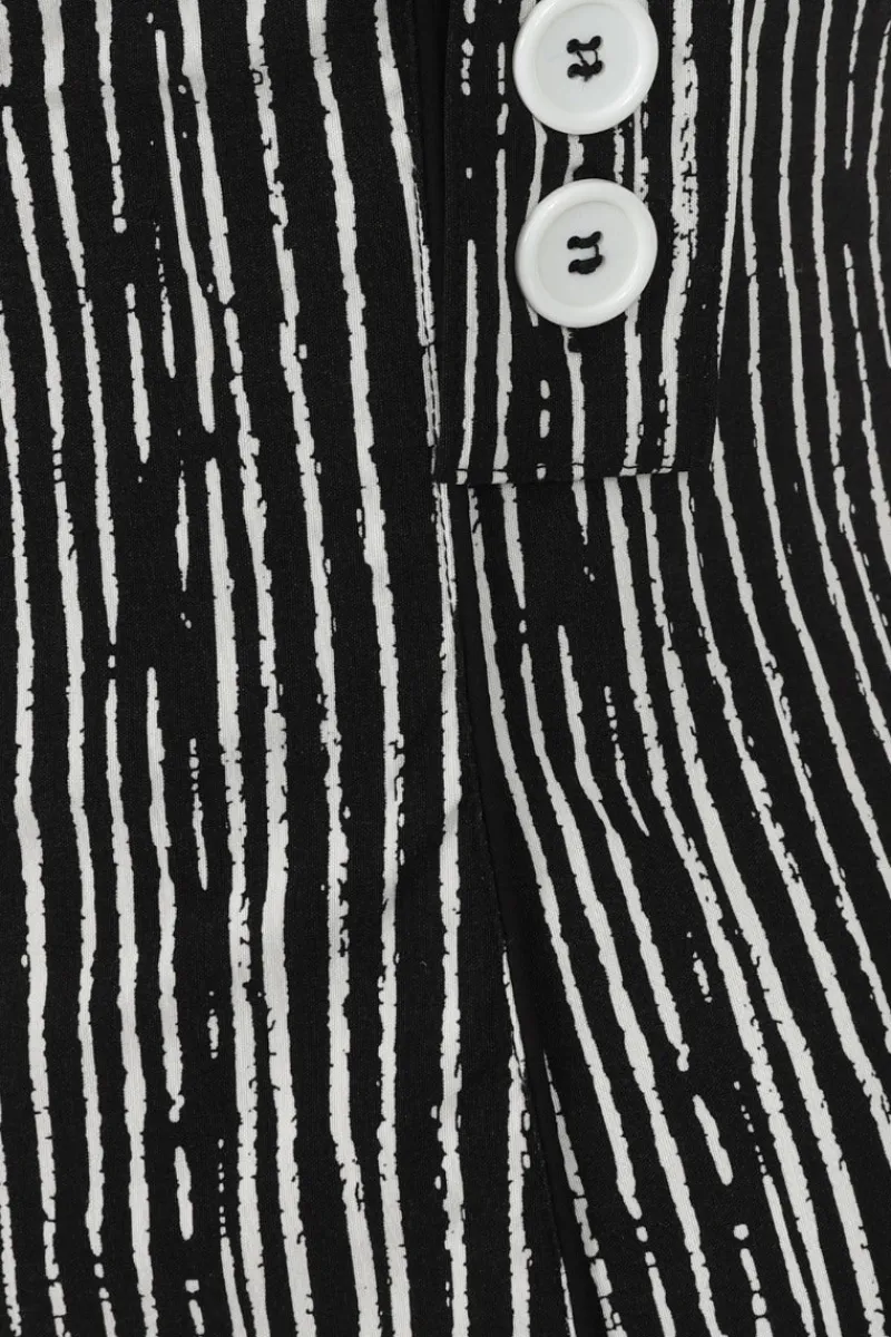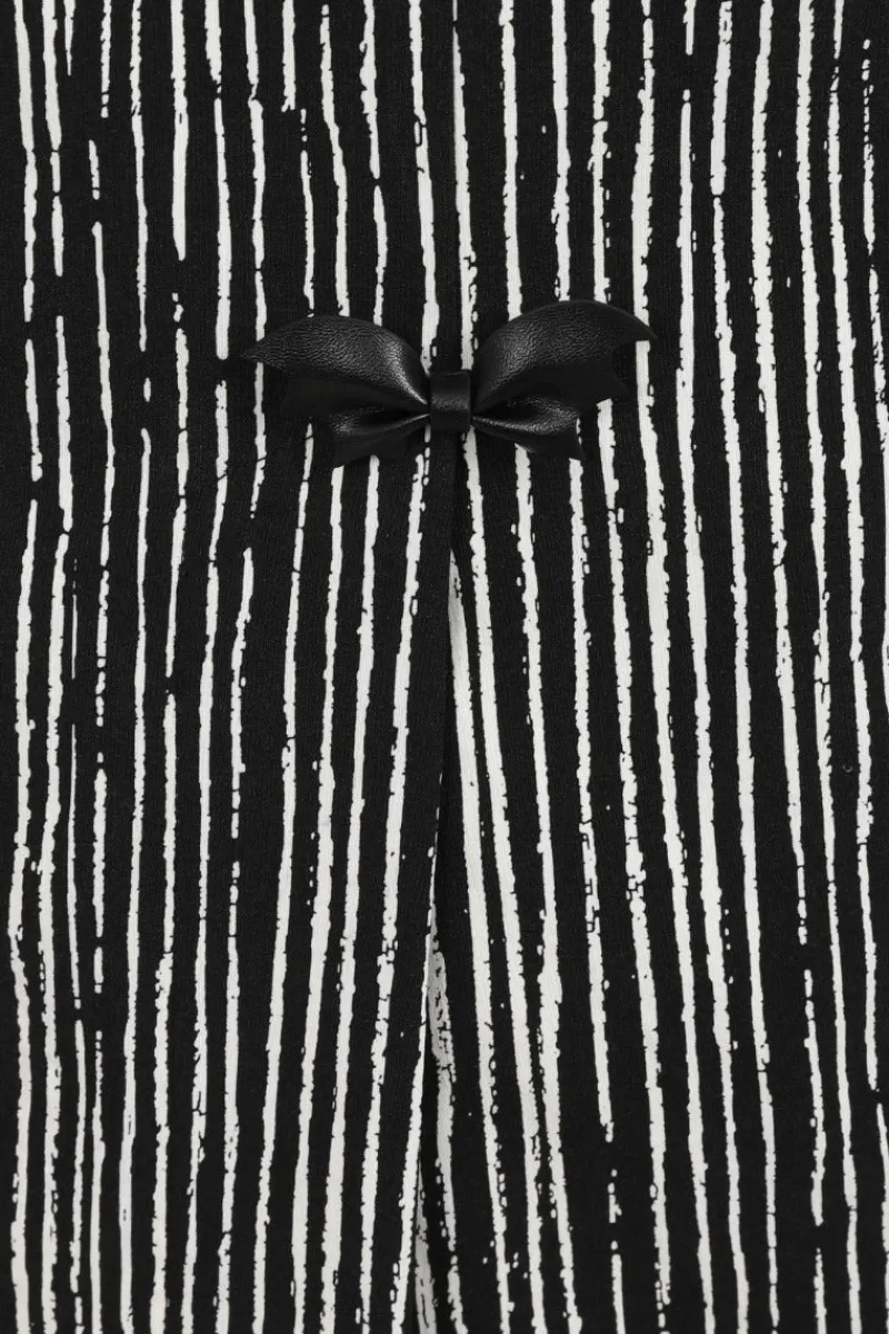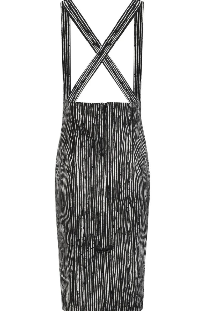 - Black pencil style pinafore skirt decorated with white scratch mark stripes