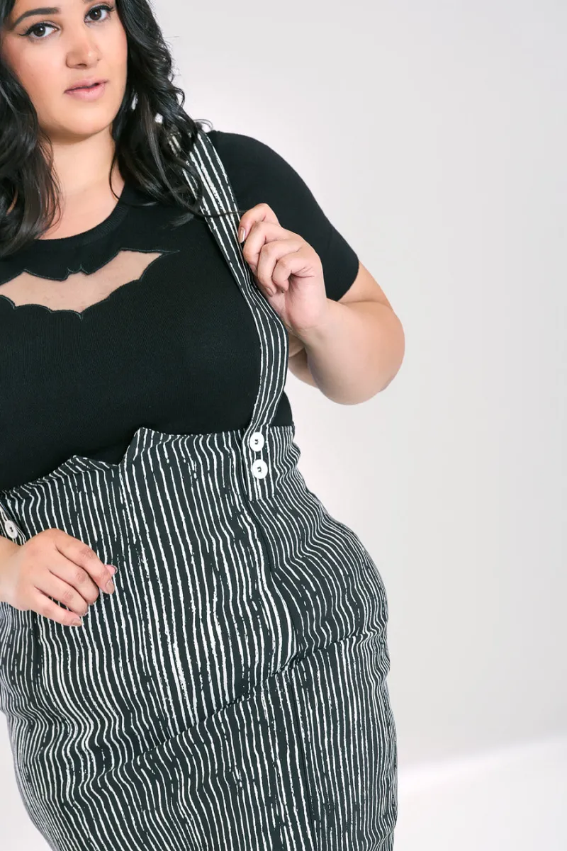 - Sleek, spooky and stretchy… our Regan Pinafore Skirt has it all!