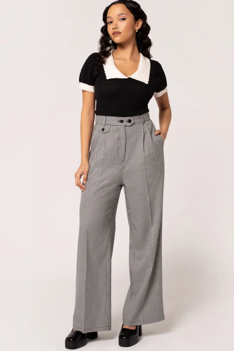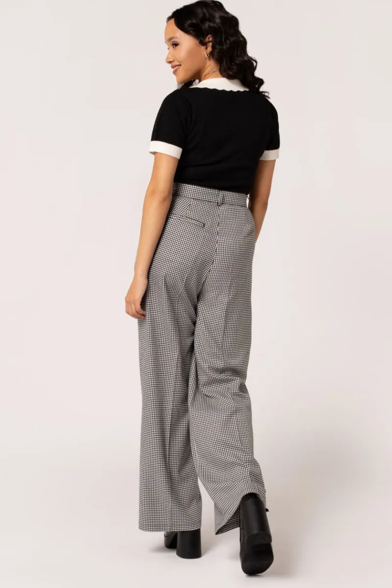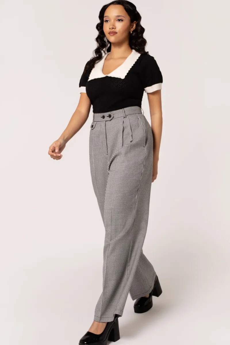 - Black and white houndstooth trousers