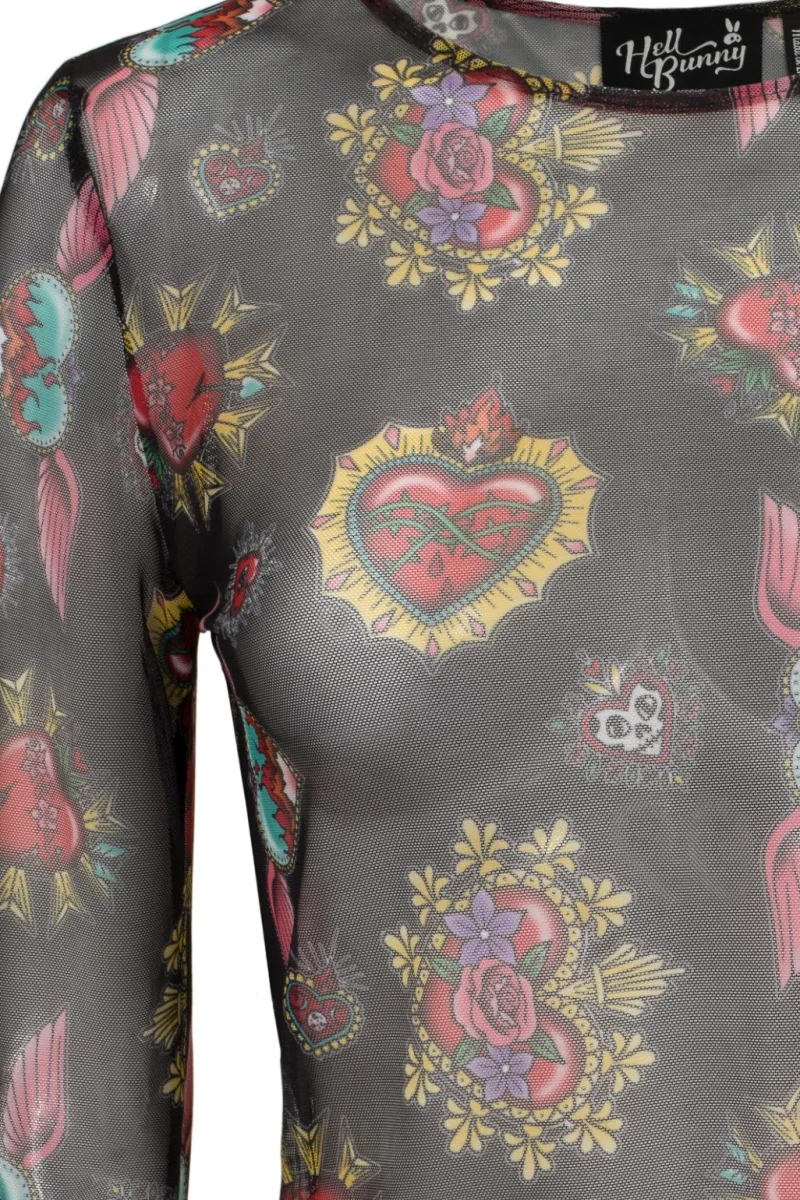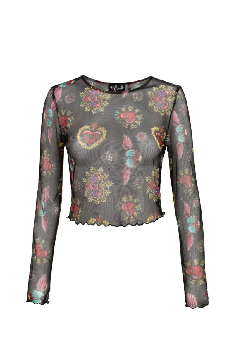 Hell Bunny Amias Mesh Top Black Discount