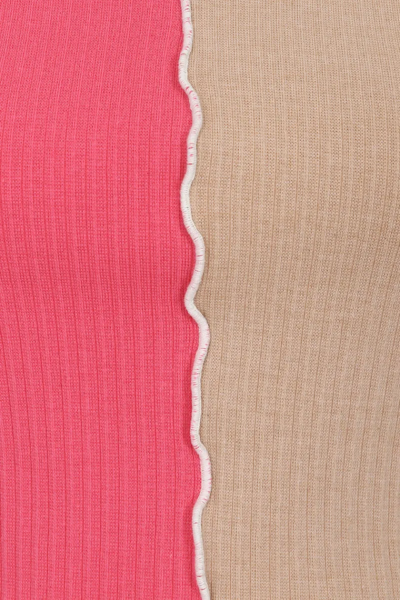 - Colour is ivory, pink & beige ribbed fabric with exposed seams finish in white