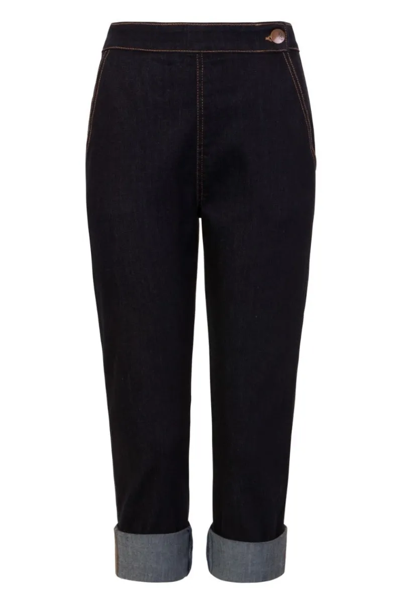 Hell Bunny Charlie Denim Capris Navy Hot