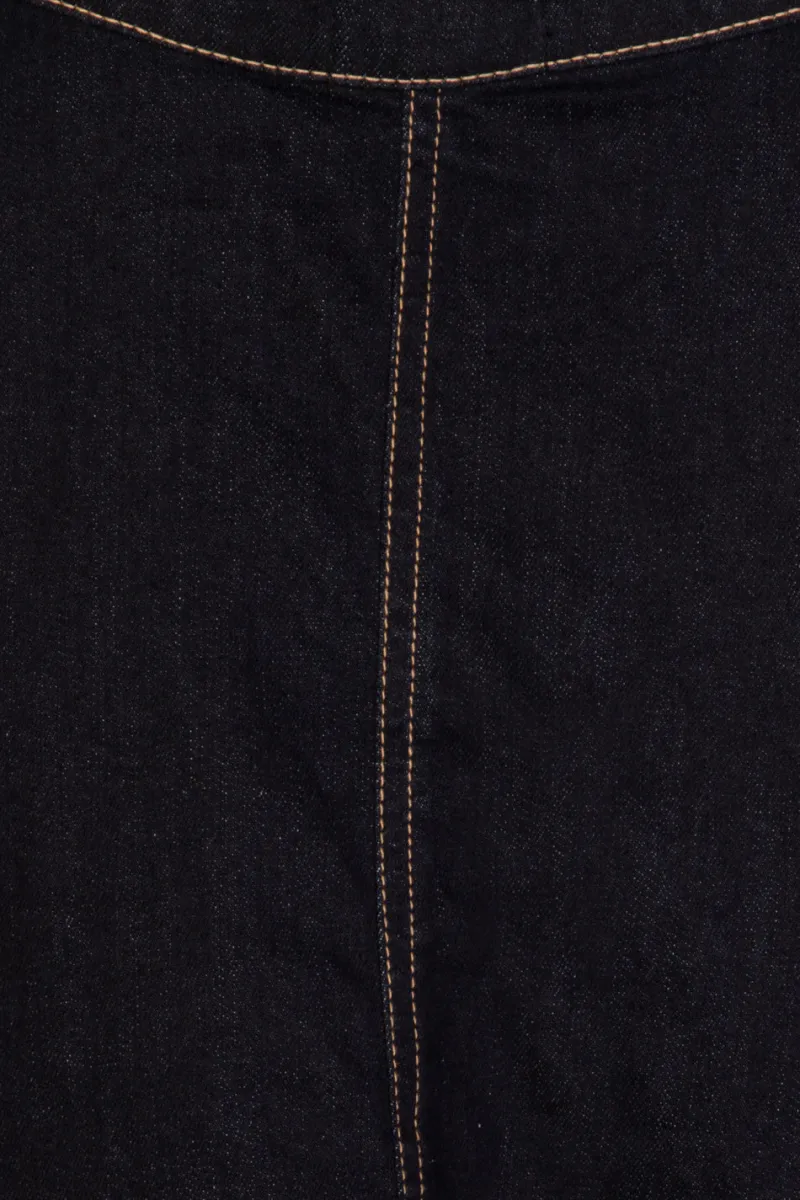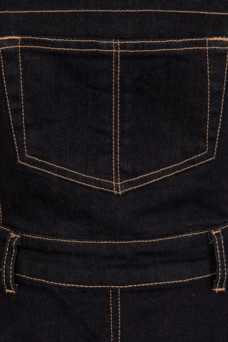 - Stretch denim pinafore mini dress