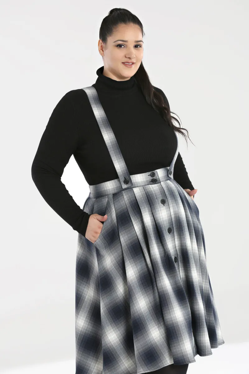 - Grey & black tartan flared pinafore skirt