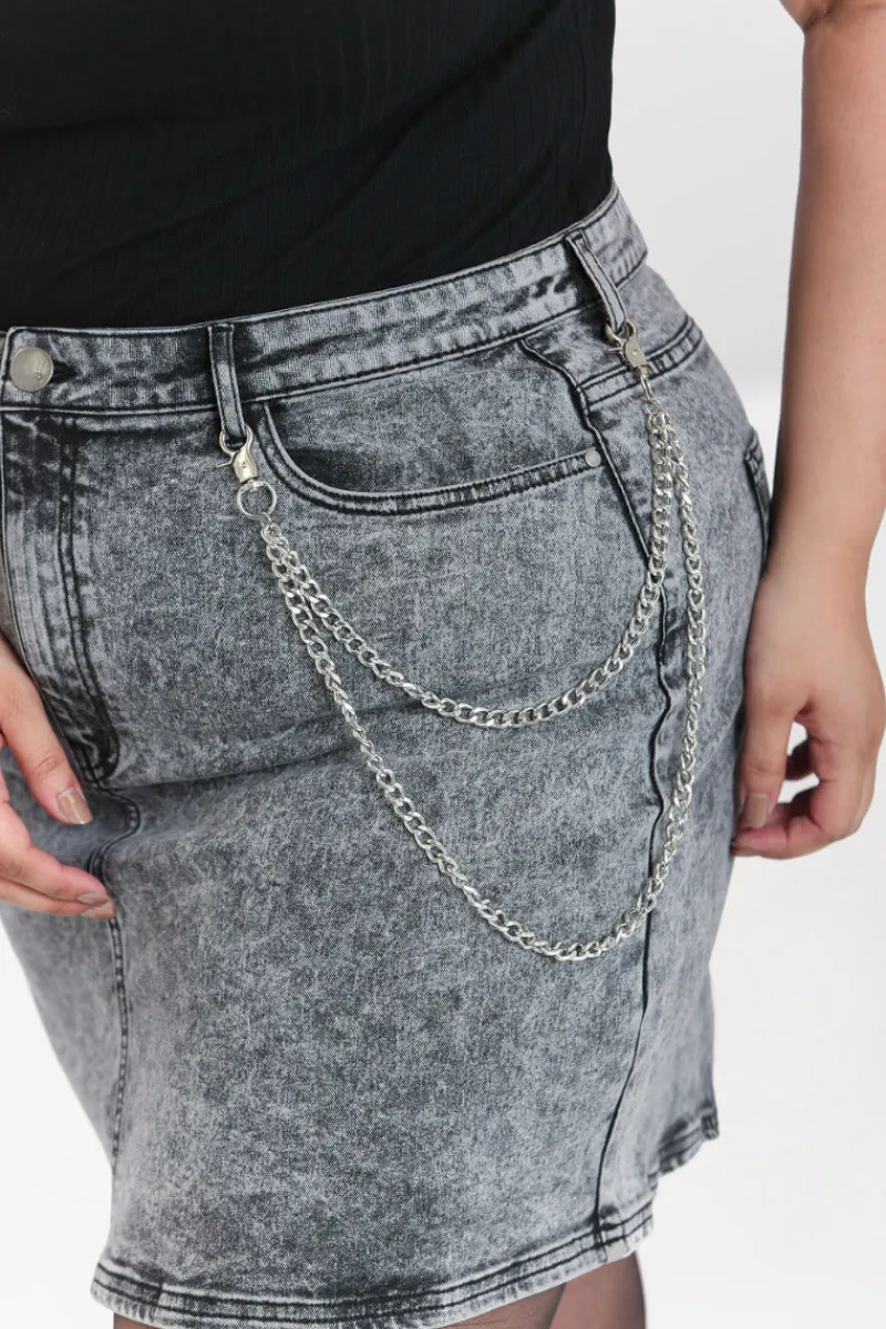 - Flattering high waist with added belt loops and silver chain detailing
