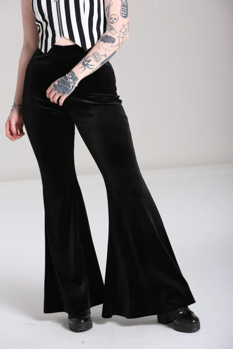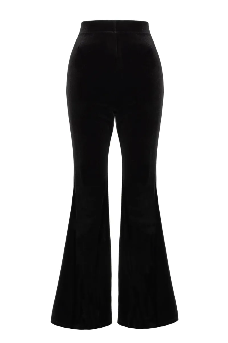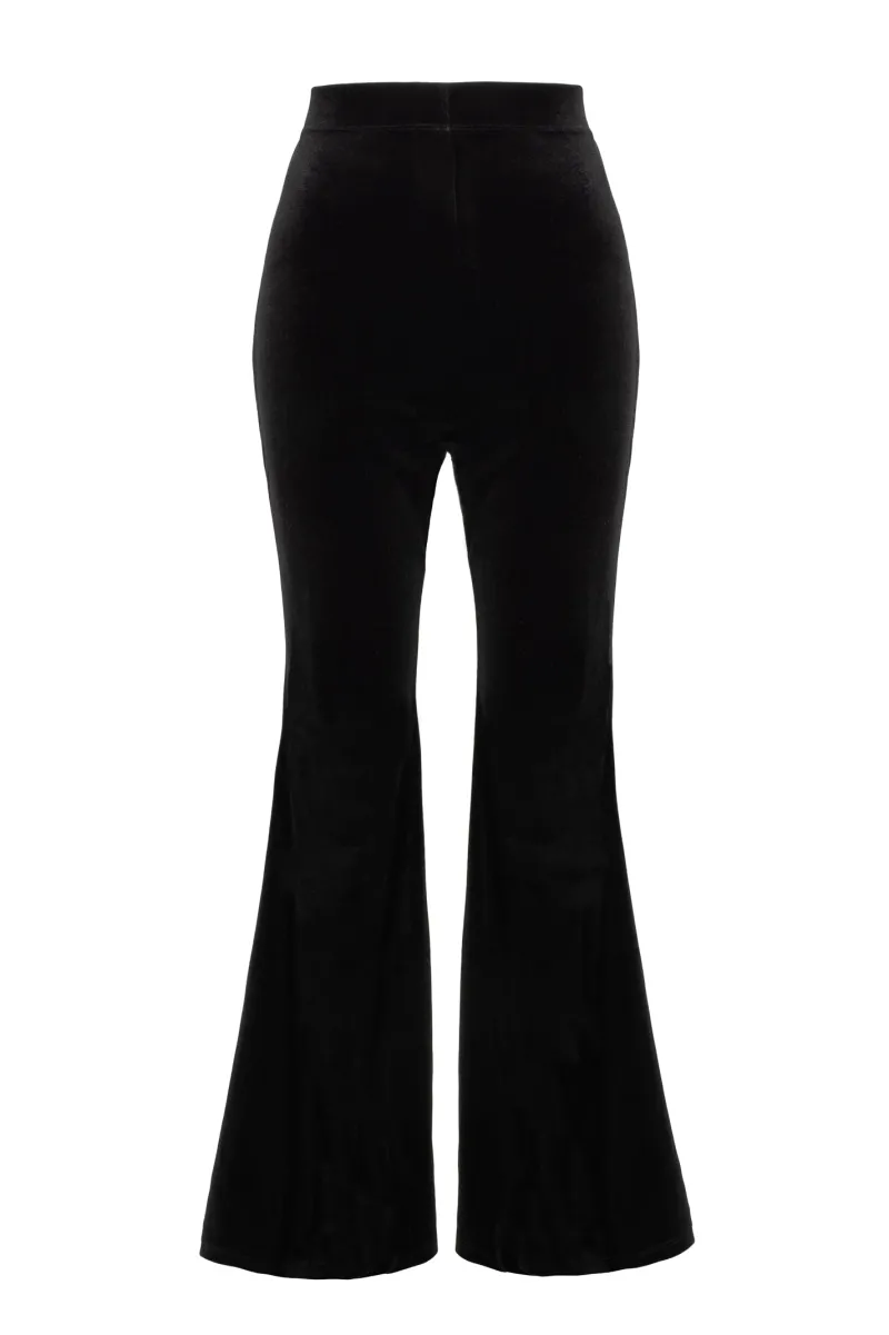 - Black velvet stretch flares