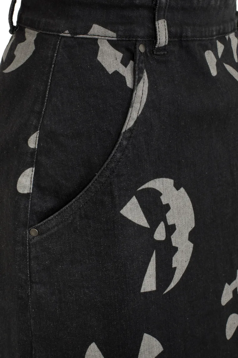 - Dark grey base with light grey Jack-o-lantern face pattern all over denim