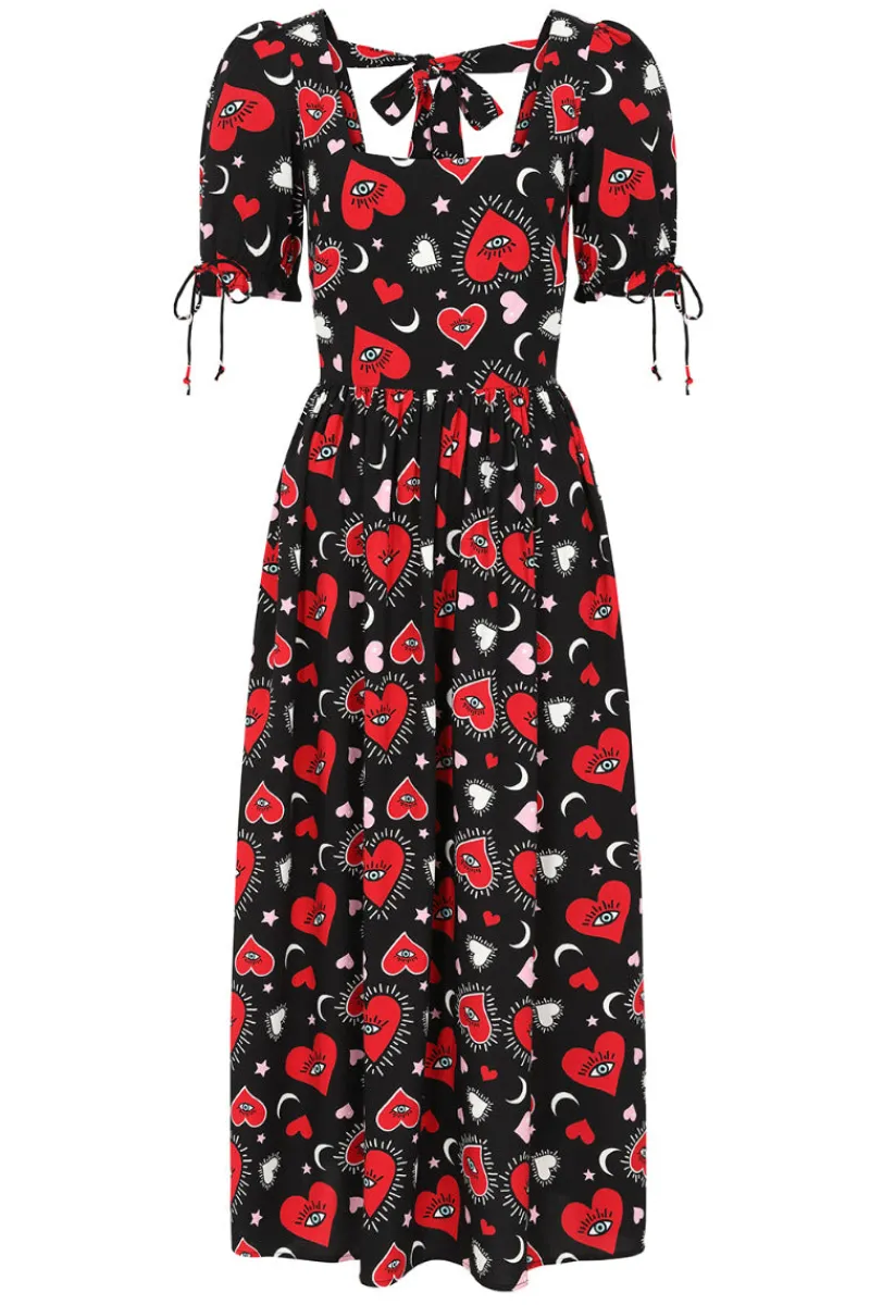 - Black base fabricwith bold red,pink & white heart & star motifs
