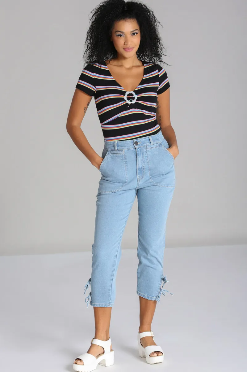 Hell Bunny Kiralee Cropped Jeans Blue Clearance
