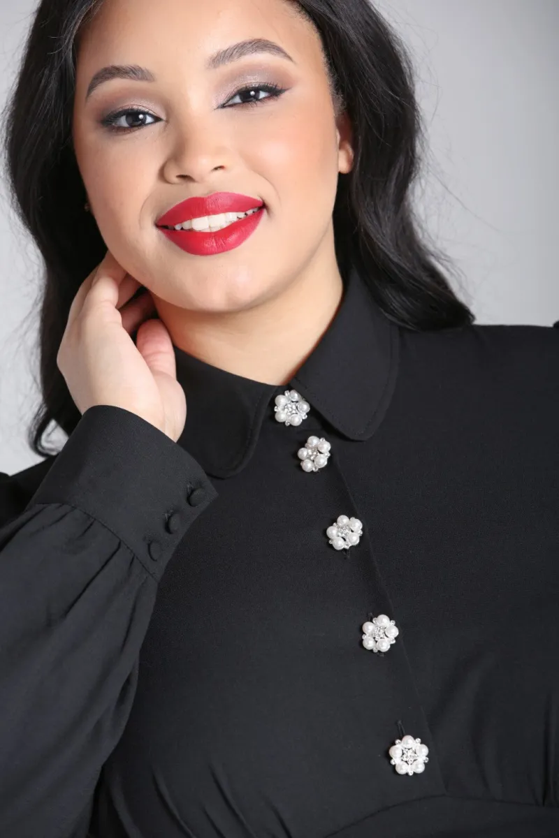 - Button down the centre front of bust with pearl decorative buttons