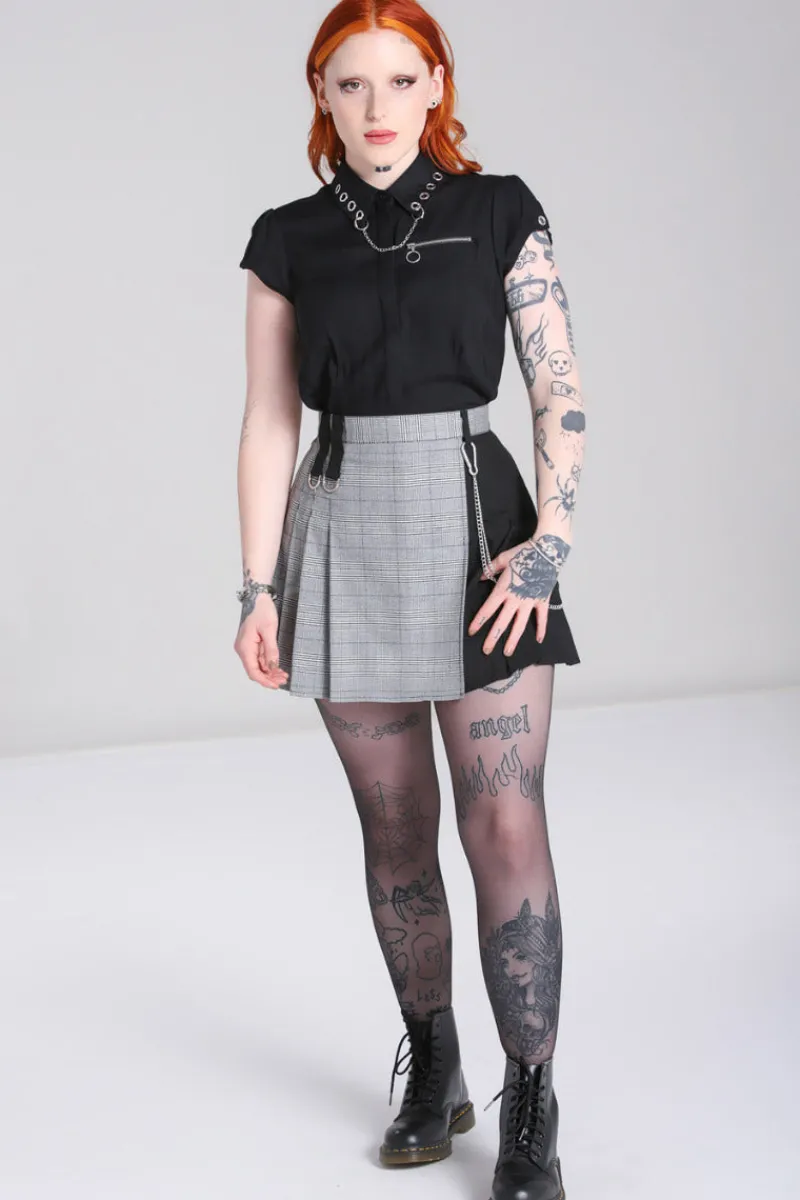 - Grey check & black mini skirt