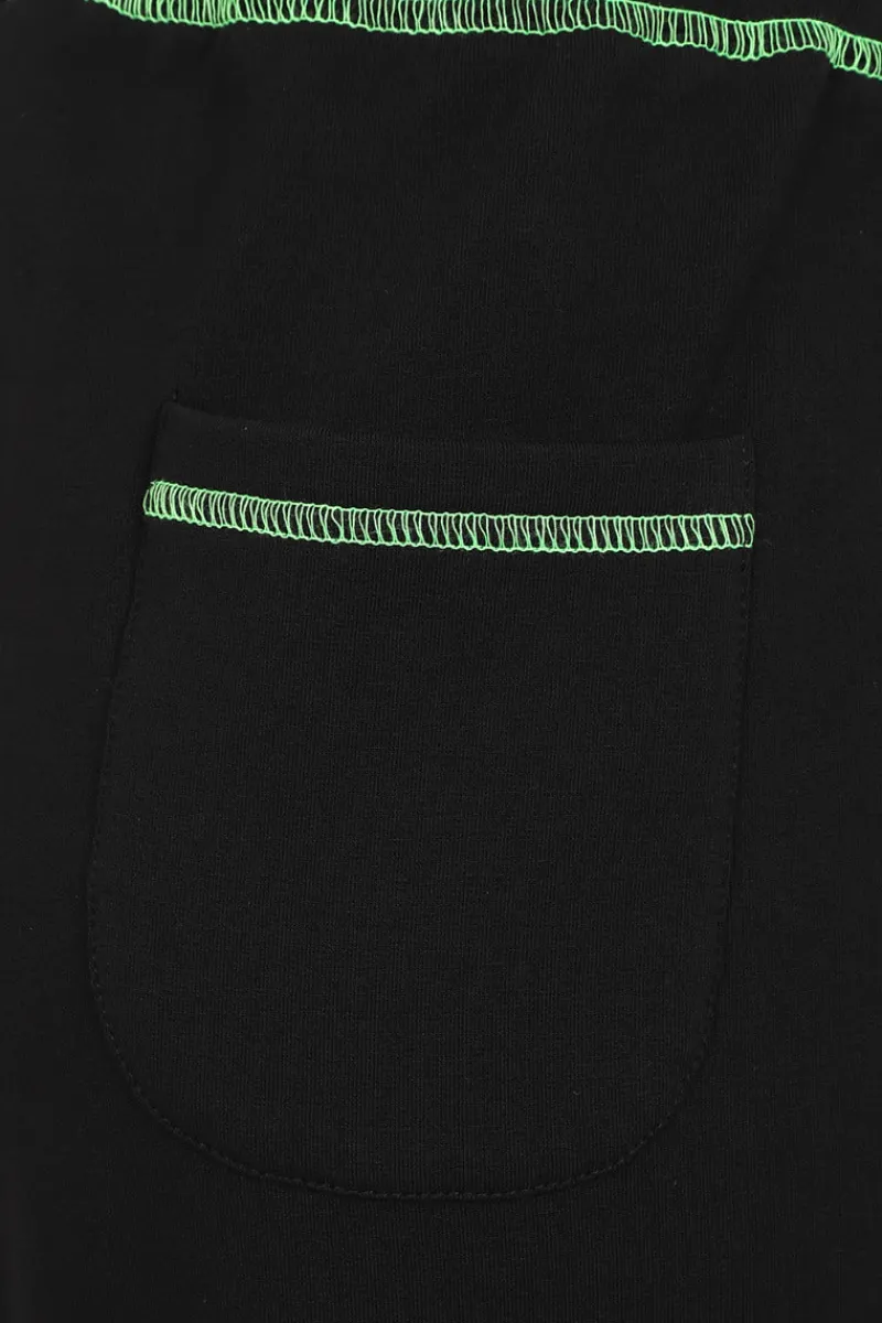 - Contrasting neon green stitching along the waist, pockets and leg cuffs to add a little more spook!