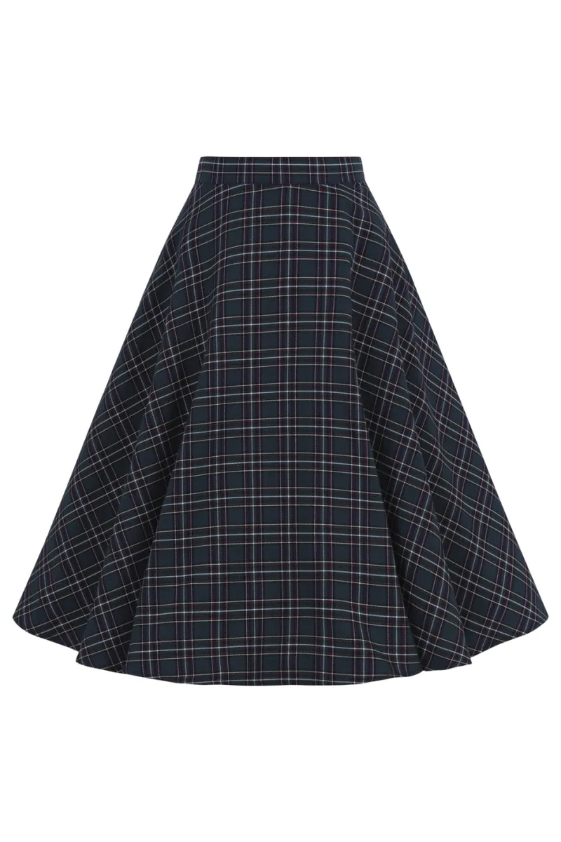 - 50’s skirt in green tartan with white, red and navy stripes.