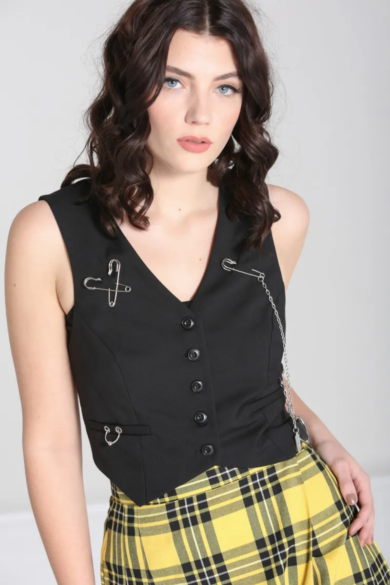 Hell Bunny Rebellion Waistcoat Black Hot