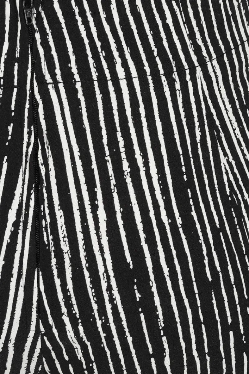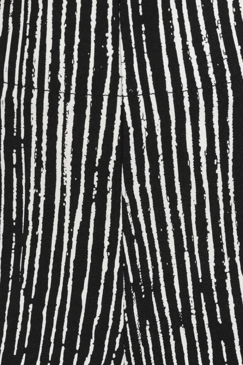- Black figure-hugging capris decorated with white scratch mark stripes