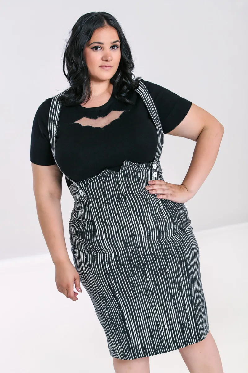 - Sleek, spooky and stretchy… our Regan Pinafore Skirt has it all!
