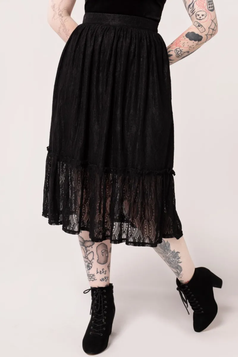 - Black striped lace midi skirt