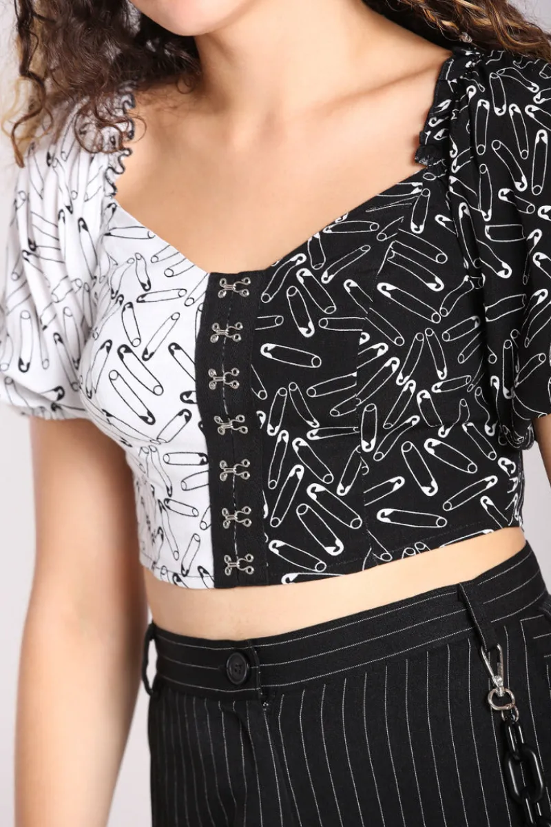- Sweetheart neckline with silver hook & eye detailing down centre front