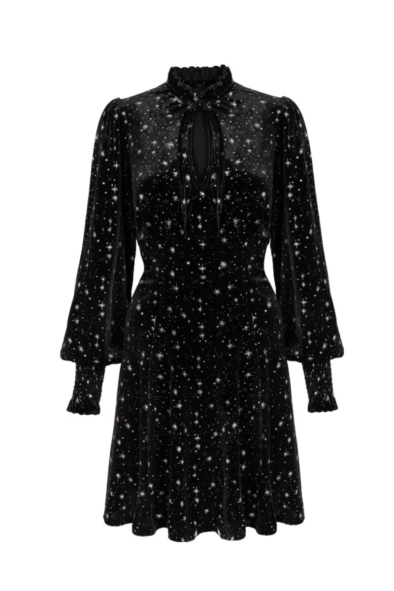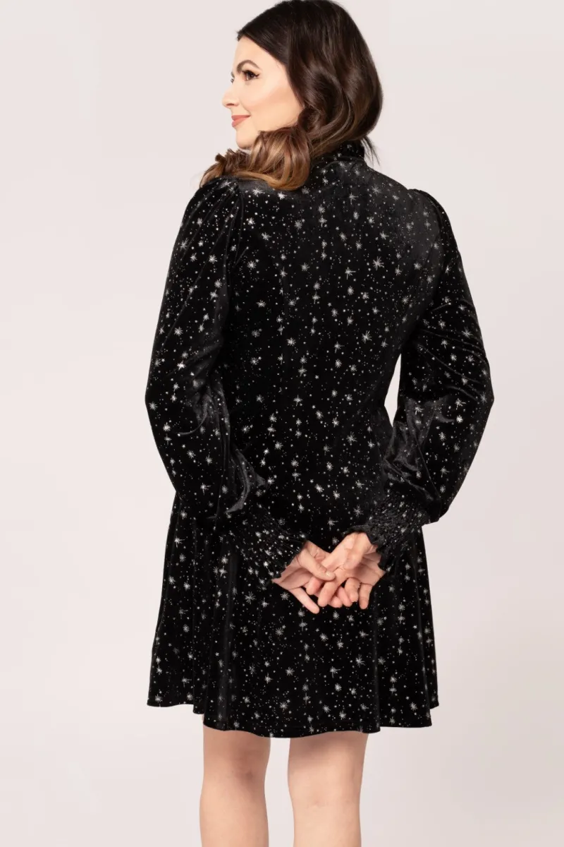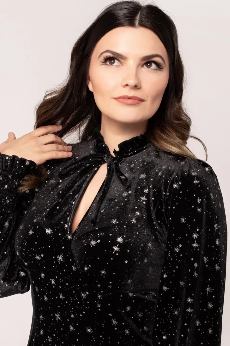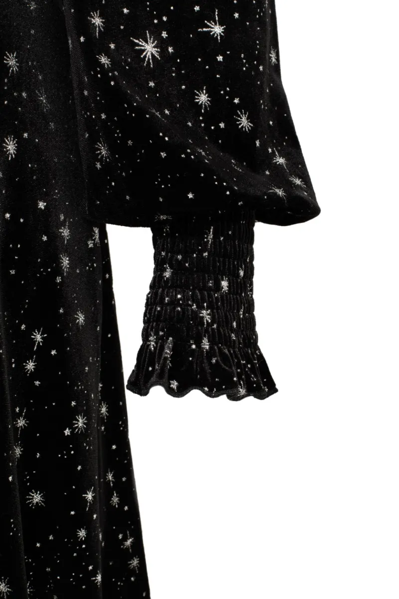 - Black velvet fabric with silver glittery sparkles/stars all over