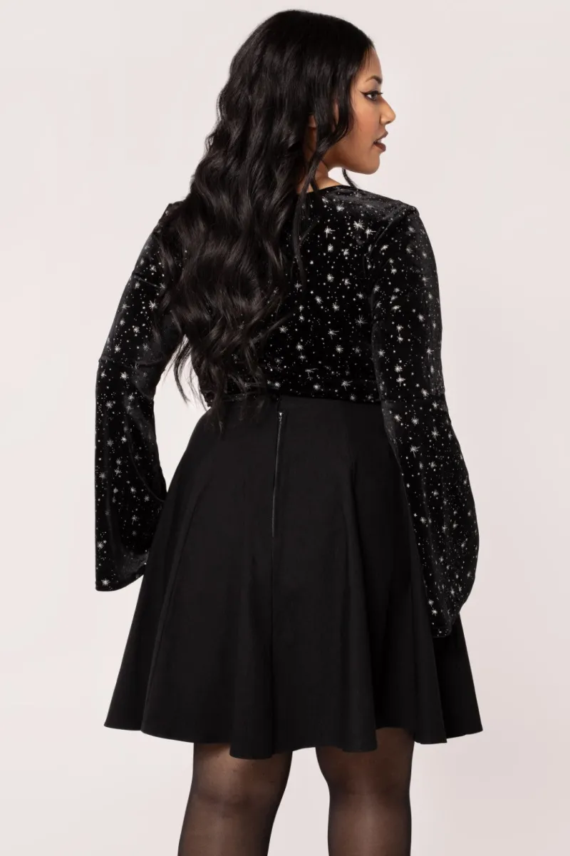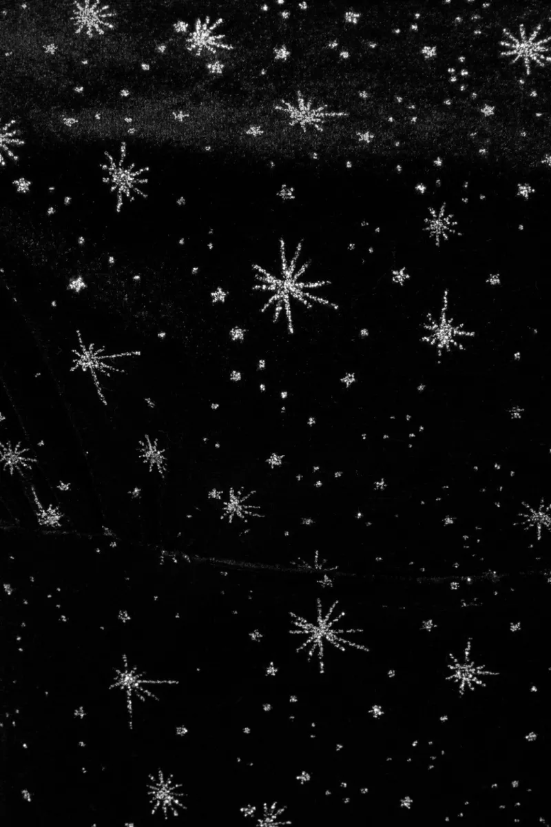 - Black velvet fabric with silver glittery sparkles/stars all over