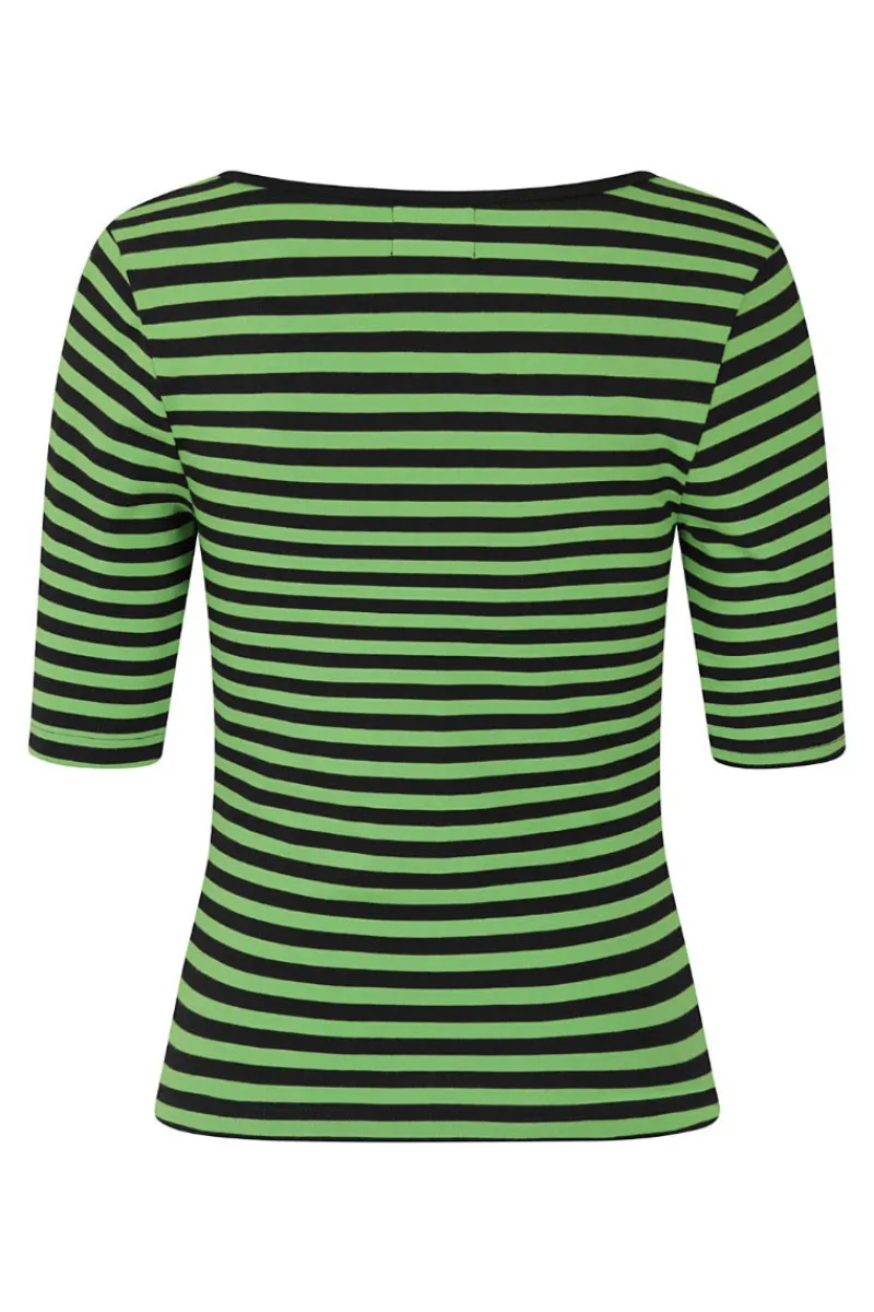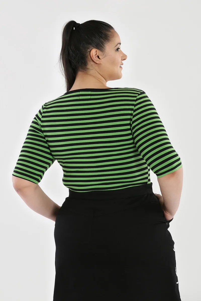 - The not-so-basic basic tee your wardrobe needs! Stretchy, striped jersey top available in green, orange and white.