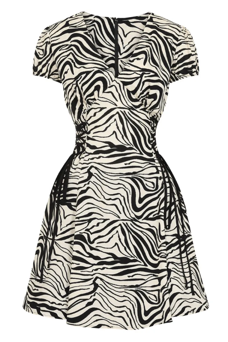 - Move over leopard print… there’s a new print in town! Say hello to our Zebra Mini Dress.