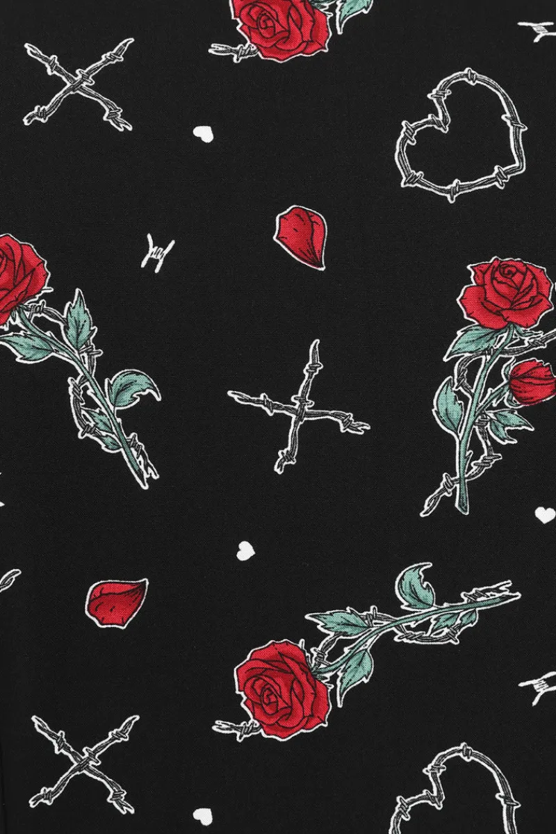 - Black base with barbed wire hearts & red roses all over